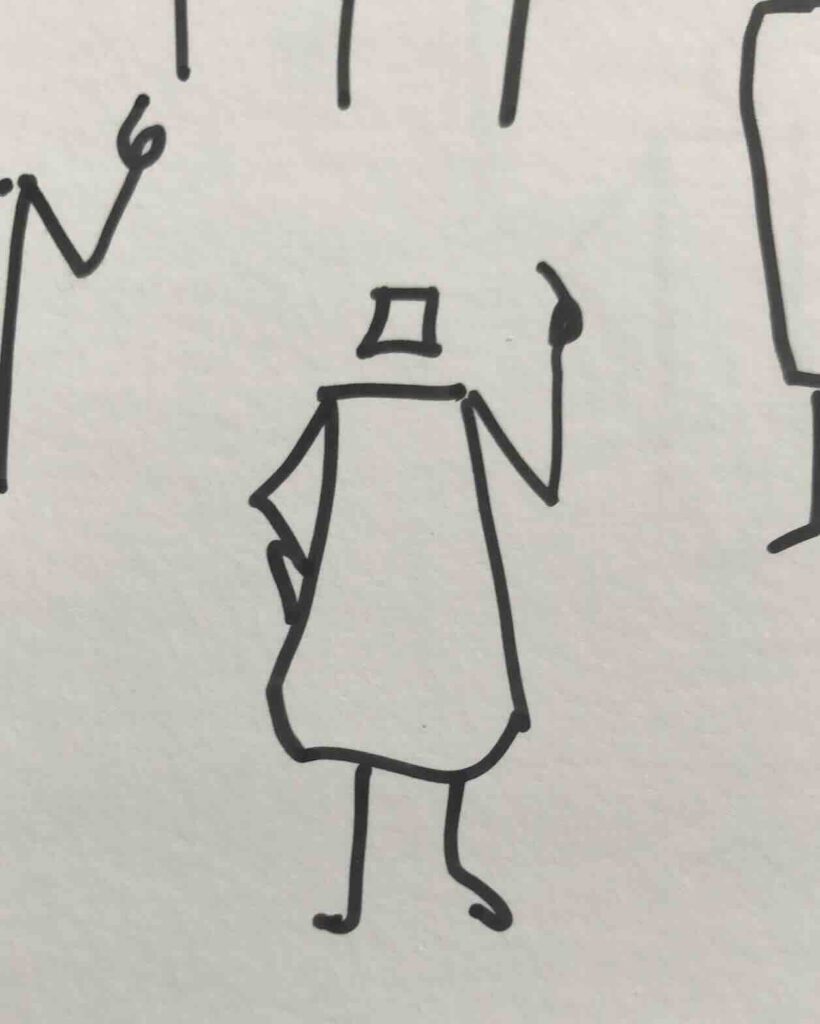 Spéciale dédicace à Magali qui s’est entrainée à représenter une personne qui montre du doigt.